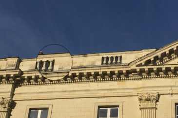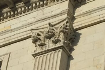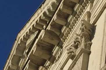 Partie supérieure de l'entablement. Sa disposition en saillie protège les parties inférieures de l'écoulement des eaux pluviales.